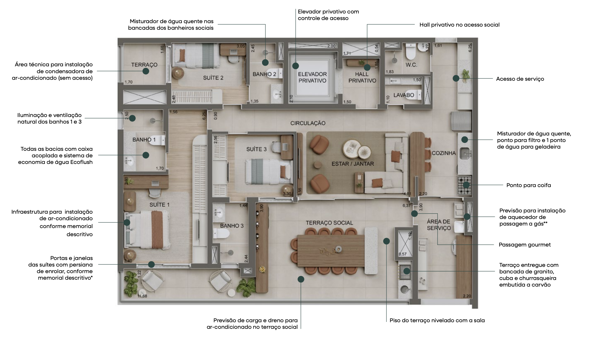 Apartamento Tipo C (Garden) – 198 m² | 4 suítes | 3 vagas de garagem